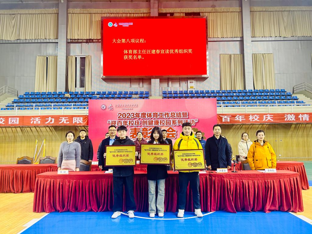学生工作处处长管斌宣读2023年度参加体育运动竞赛获奖名单,相关职能部门负责人分别向受表彰的先进集体和个人颁奖。