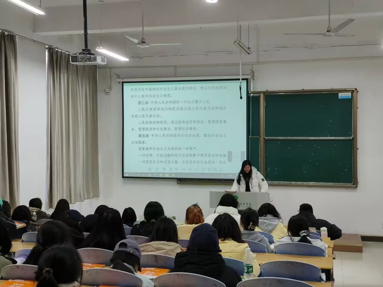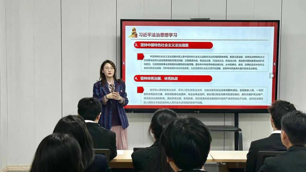 开展宪法宣讲,弘扬宪法精神。茅山校区团委书记王俪桥以“大力弘扬宪法精神,建设社会法治文化”为主题,面向青年学生代表,就习近平法治思想、党的二十大精神、中华人民共和国宪法等进行宣讲,进一步固牢同学们得崇宪尚法根基,增强法治观念。