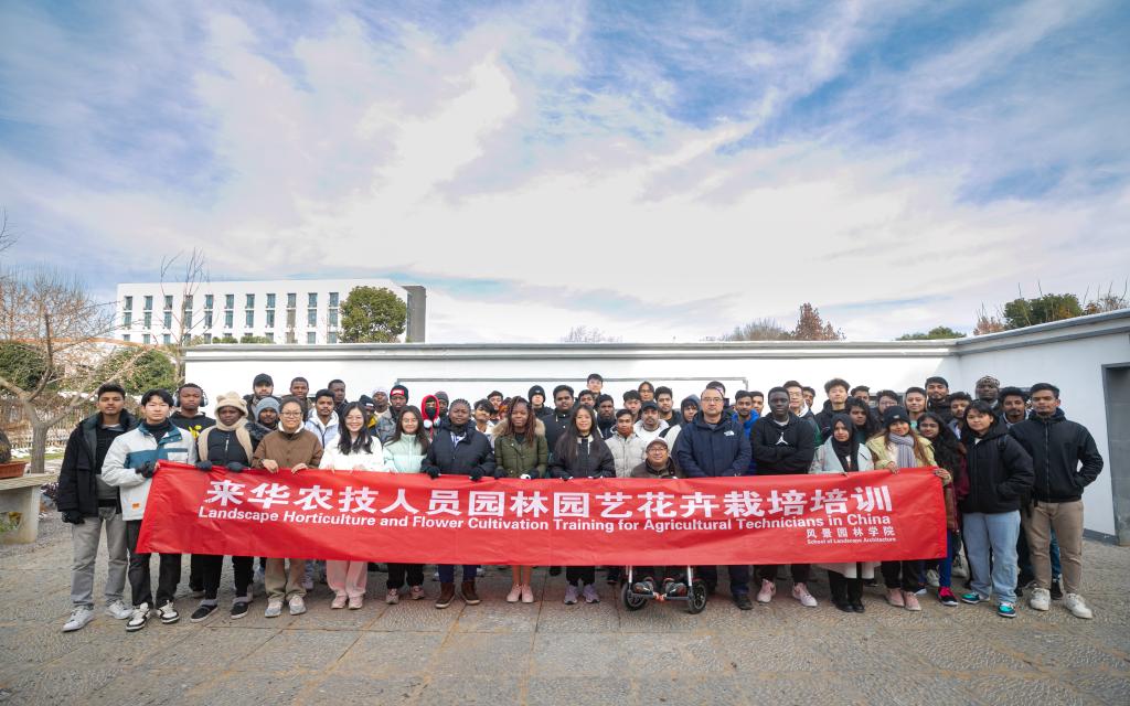 为提高“一带一路”国家留学生对绿色环保、生态文明的认识和意识,引领他们共同参与绿色环保的事业和生态文明建设,12月23日,由风景园林学院举办的“一带一路”国家园林园艺花卉栽培培训班在南校区花房和盆景园举行。来自“一带一路”国家留学生共百余人参加了此次培训。