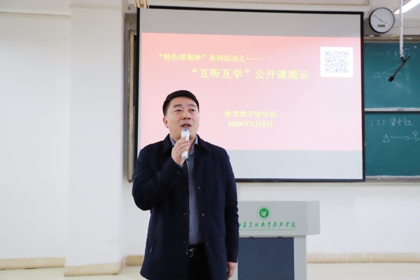 颜志明对“互听互学”公开课展示活动给予充分肯定,并针对教学质量的提升提出三点要求:一是继续抓好课堂教学管理;二是努力提高教师教学和管理水平;三是深入推进“互听互学”活动。同时,他强调各二级学院(部)是教学质量的主要实施者,要敢于创新,不断提高学院教师的整体教学水平。