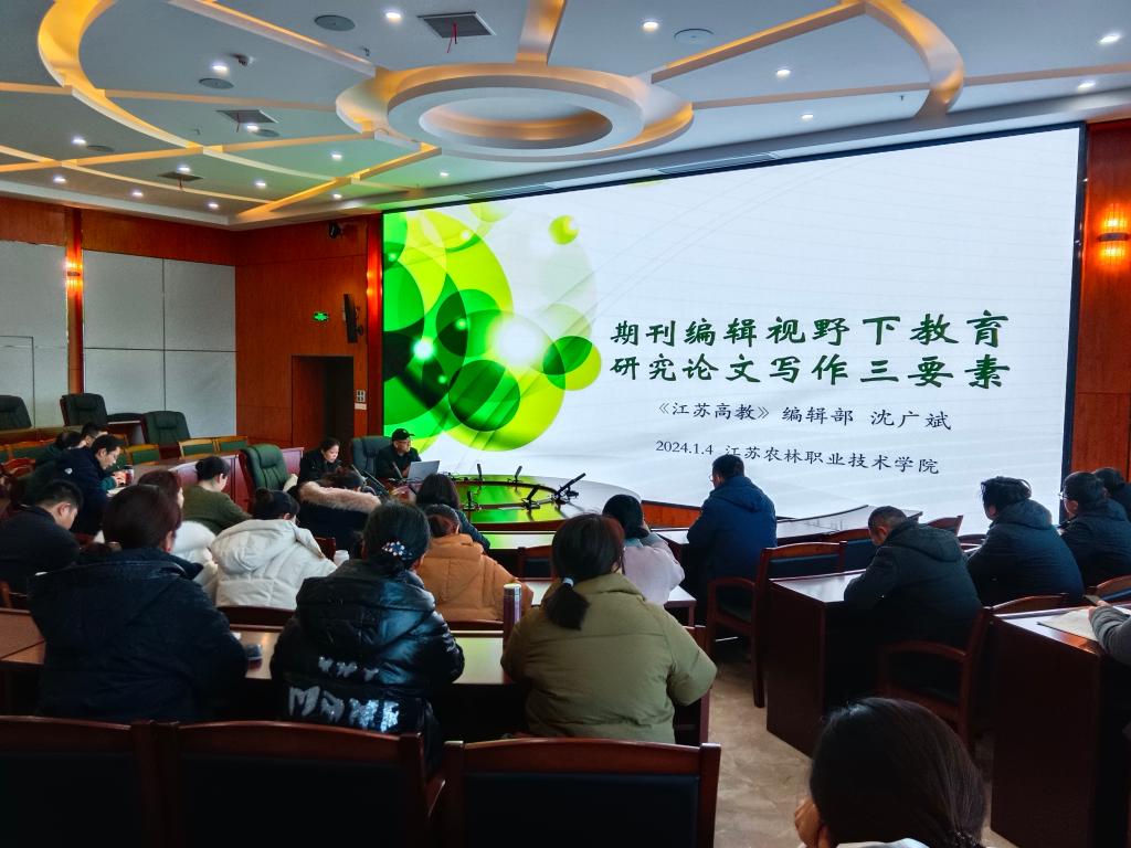 为更好地指导永利官网教师撰写高水平教育研究论文,进一步提高永利官网教育研究论文质量,1月4日下午,高职教育研究所邀请《江苏高教》编辑部主编沈广斌,在大学生艺术中心107会议室作了题为“期刊编辑视野下教育研究论文写作三要素”的专题讲座。学院党委委员、纪委书记孙俭、各二级学院科研副院长、各二级学院(部门)教师代表、高职教育研究所全体成员共70余人参加了讲座。