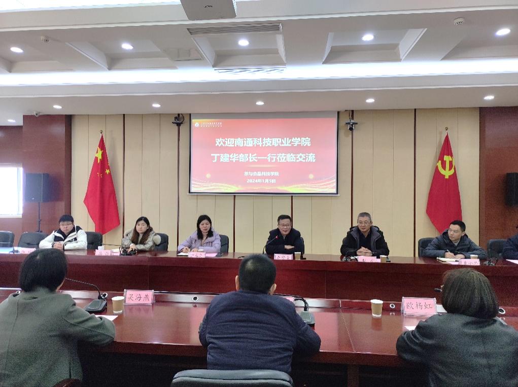 1月5日,南通科技职业学院党委委员、宣传部部长丁建华等一行6人来永利官网访问交流。学院党委委员、副院长毕德全及茶与食品科技学院领导班子成员参与交流。