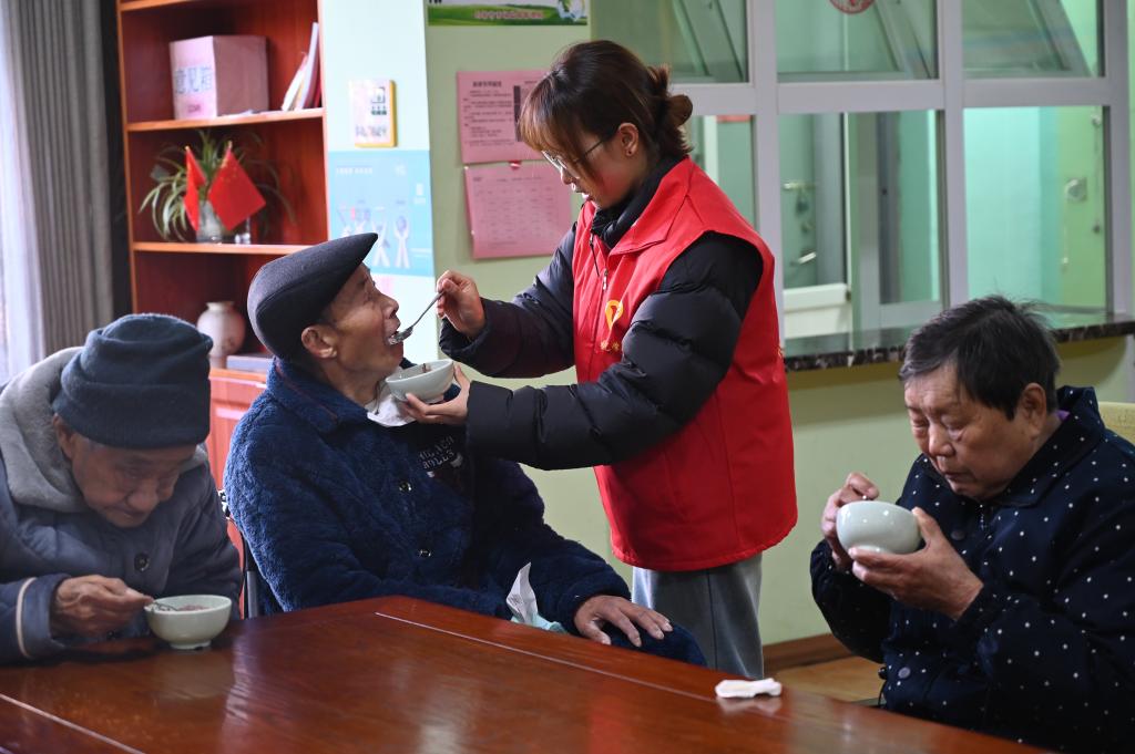 一大早,志愿者们在工作人员的配合下现场熬制了腊八粥,并把腊八粥送到老人的手上,帮助不方便的老人吃腊八粥,与老人们拉家常,话祝福。老人们围坐在餐桌前,品尝着象征美好寓意的腊八粥,脸上洋溢着满意的笑容。活动间隙志愿者们为老人们带来精彩的文艺表演,现场制作的五谷贴画,平日里安静的养老院一下子热闹起来,院里充满浓浓的暖意。