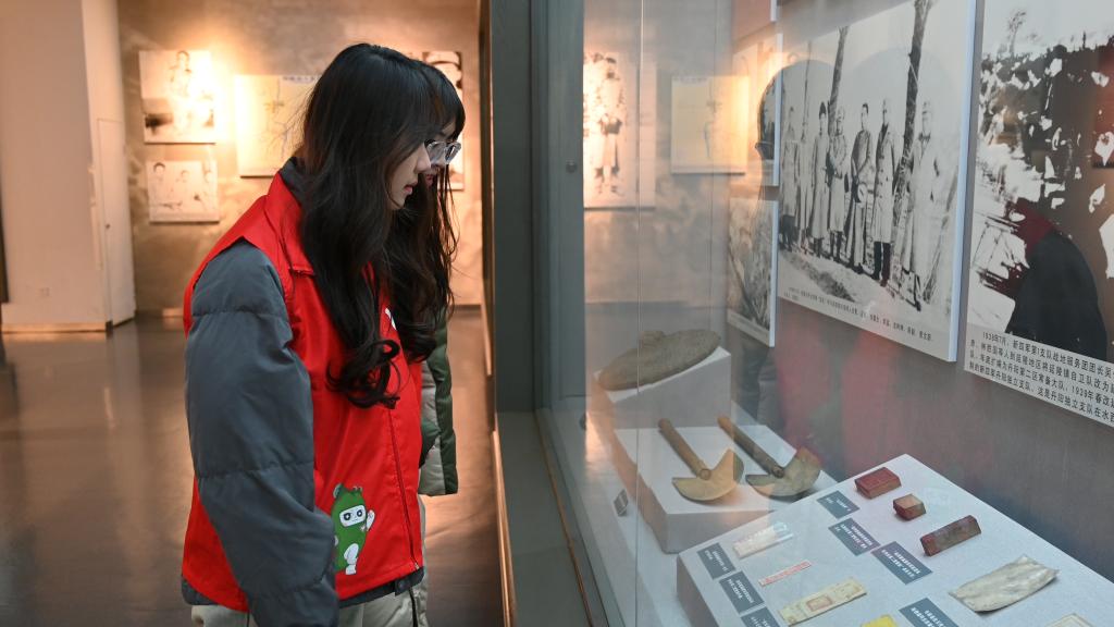 壹号兵站展厅中,宣讲团成员通过聆听讲解,观看文字、图片、实物等,了解红色茅山烽火李塔的红色故事,学习革命先辈们艰苦奋斗、不屈不挠的革命精神。