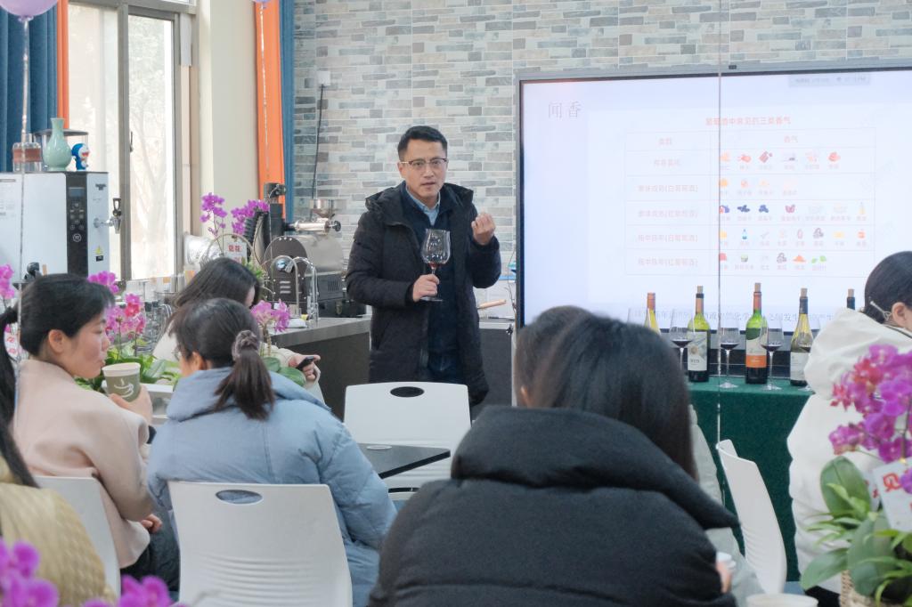 经济与人文学院李涛老师为全体女教师进行了葡萄酒知识的讲授,从葡萄酒的健康、礼仪、颜色、香气、产地、搭配、储藏、辨别,葡萄酒分类、品鉴、酒杯选择、持杯方式等做了详细的介绍。大家边听讲边品酒,感受到醇美好、悦幸福、荟生活。活动现场,经济与人文学院分工会还为每位女老师准备了蝴蝶兰作为节日礼物。老师们闻着蝴蝶兰清幽的芬芳,品尝着咖啡甜点,感受来自春天的气息和温馨向上的节日氛围。