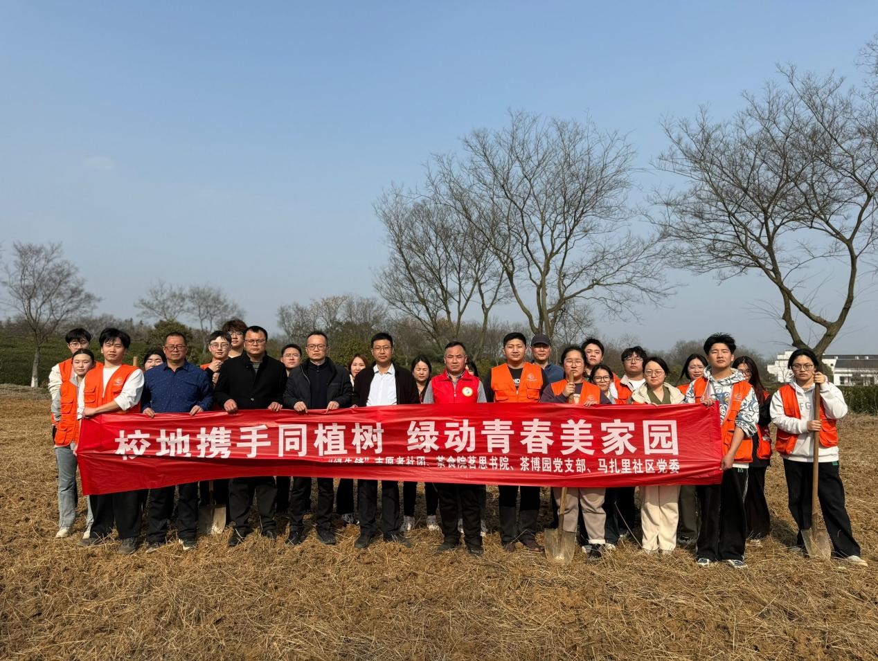 春风拂面,新绿吐蕊。时值第46个植树节,为深入学习贯彻习近平生态文明思想,积极践行“绿水青山就是金山银山”的绿色发展理念,3月11日,茶与食品科技学院学生党支部联合句容市马扎里社区党委、茶博园党支部于江苏茶博园开展“植树添新绿,共绘生态图”义务植树活动。
