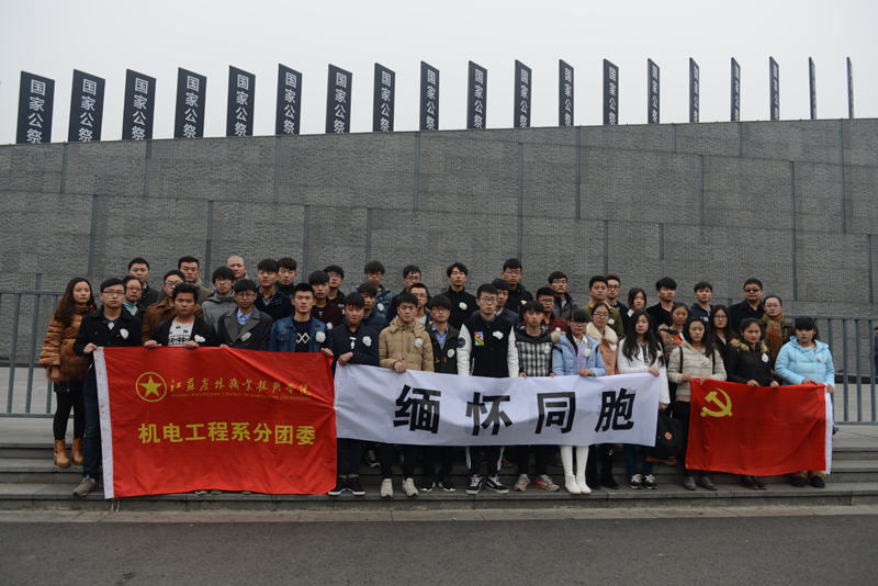 12月11日,机电工程系党总支学生党支部组织学生党员和团员代表等举行了“勿忘国耻 以史为鉴 奋力拼搏 圆梦中华”国家公祭日主题活动。在侵华日军南京大屠杀遇难同胞纪念馆外,师生们默哀三分钟,以缅怀南京大屠杀中的遇难同胞。在雨花台烈士陵园,鲜红的党旗下,支部全体党员再次重温了入党誓词,伴随着沉重的音乐,大家依次向前敬献鲜花,祭奠烈士。