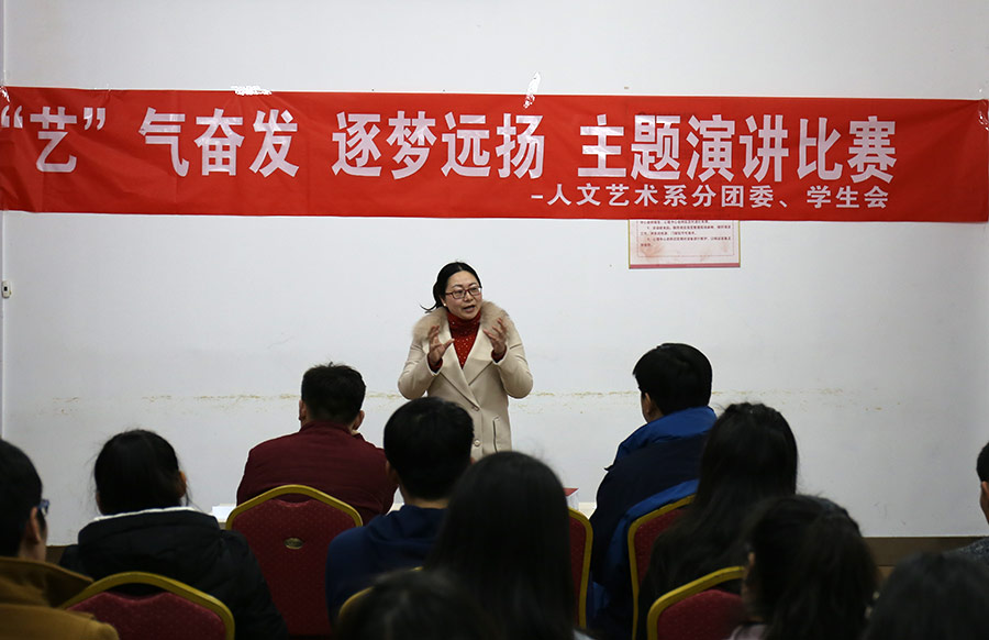 3月14日晚,人文艺术系分团委在学院心理健康中心团体辅导教室举办了“‘艺’气奋发逐梦远扬——我的社会主义核心价值观”主题演讲比赛。人文艺术系相关老师担任评委,来自各团支部12名选手参加了比赛。
