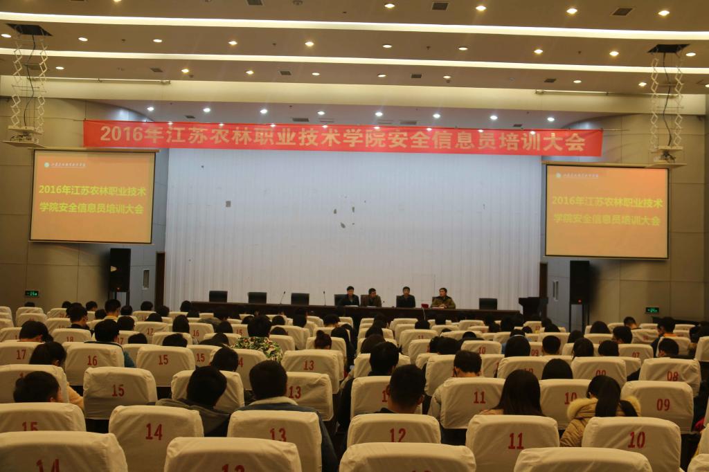 3月7日晚,学院首届安全信息员培训大会在图书馆报告厅举行。此次共有200余名学生安全信息员参训。 安全保卫处张义河老师结合自身经验和心得对安全信息员的角色定位、管理规定、主要任务、职责要求、安全信息概况、安全业务能力等六个方面做了详细的讲解,希望广大信息员能够尽职尽责,为校园安全管理贡献自己的一份力量。学生工作处孙鑫老师与大家探讨了安全工作和学生管理两者间的关联。 会上,与会老师为信息员代表颁发了聘书,并一同观看了学院平安校园建设宣传专题片。