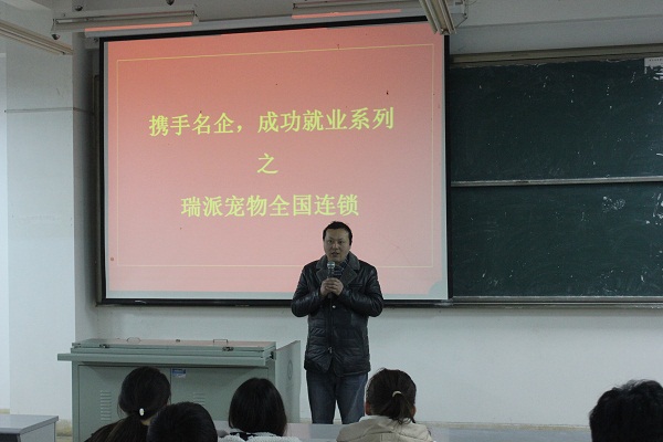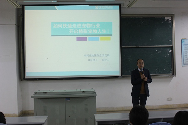根据畜牧兽医系“携手名企,成功就业”系列活动的安排,3月8日, 江苏瑞派东华宠物医院管理有限公司总经理、无锡派特宠物医院赖晓云院长应邀为宠物养护与疫病防治和宠物医学两个专业的师生做了题为《如何快速走进宠物行业,开启精彩宠物人生》的专场讲座。讲座的主要内容为宠物行业的发展历史、宠物行业现状及前景、宠物行业从业人员的就业及薪资行情等方面。