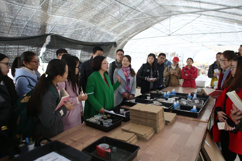 2016年3月3日上午,BTEC班全体师生来到句容市青蓝未来农业发展有限公司进行了现场教学活动。 结合课堂学习,本次现场教学主要从多肉植物的生产、管理、包装及线上线下销售四个方面进行。在公司总经理章总的热情讲解及Roel Van Heijningen教授的指导下,同学们更加贴近实际的巩固了课堂知识,增长了见识。展示区唯美萌芽,饱满可爱的多肉植物更让同学们爱不释手,深深感受到了学习的乐趣及生命的顽强。 本次现场教学活动的开展,进一步提高了师生们英语水平和专业技能,为同学们即将赴荷兰学习奠定了良好的基础。