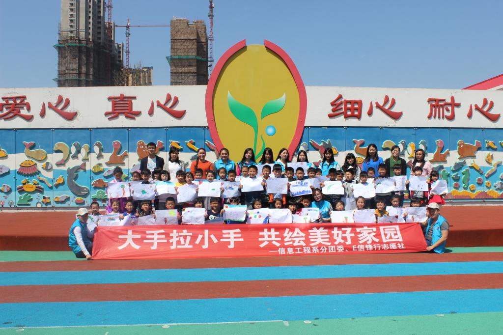 为了迎接第47个世界地球日的到来,信息工程分团委联合E信&锋行志愿社组织了11名志愿者赴句容市崇明托幼中心开展主题为“大手拉小手、共绘美好家园”世界地球日环保宣传活动。崇明托幼中心46名小朋友和24位班主任老师参加了此次活动。 活动在托幼中心活动室拉开序幕,志愿者通过图片展示、PPT讲解、互动等形式向小朋友上了一节生动的主题课。不仅展示人类地球的美丽与广博的资源,更通过强力的视觉对比,让小朋友体会到由于人类活动的频繁和对环境的破坏,地球环境日益恶化的现状;轻松的游戏活动引领小朋友如何从我做起,用我们的实际行动保护我们的地球;志愿者们还以小组形式带领小朋友阅读世界地球日环保小长廊,通过图片展览向大家普及环保知识;最后,志愿者们和小朋友一起在操场绘制他们心目中的美好家园。