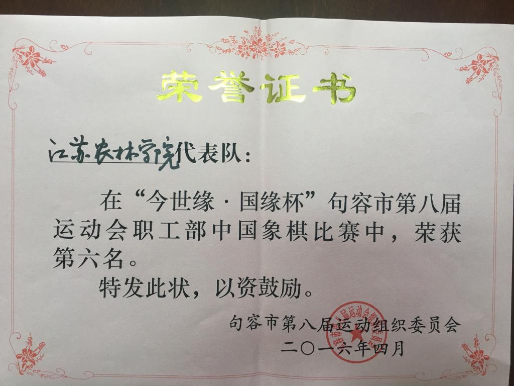 4月23-24日,在四年一次的句容市第八届运动会象棋比赛中,永利官网代表队分别荣得职工部和老年人部第六名。这是永利官网代表队首次进入前六强。