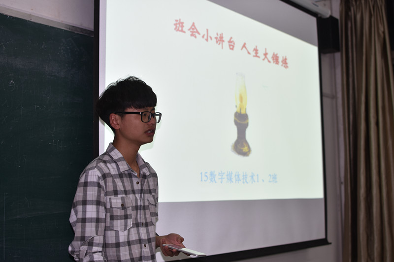 为充分利用晚自习学习时间,丰富学生学习生活,信息工程系在15数字媒体技术1、2班试点举行了“班会小讲台、人生大锤炼”主题微演讲班会活动。活动以7天为一周期,每周期定一个主题,学生按照学号顺序,依次进行三分钟的即兴微演讲。 4月10日晚,微演讲活动在第一个主题——我的家乡中拉开帷幕。两个班级学号前10名的同学首批走上讲台开讲,有的激情高昂,侃侃而谈;有的经验欠缺,紧张害怕……作为一种成长过程,此次活动将贯穿学生整个三年在校时光,用展示自我、锤炼自我的方式为三年以后的各种面试考验夯实基础。