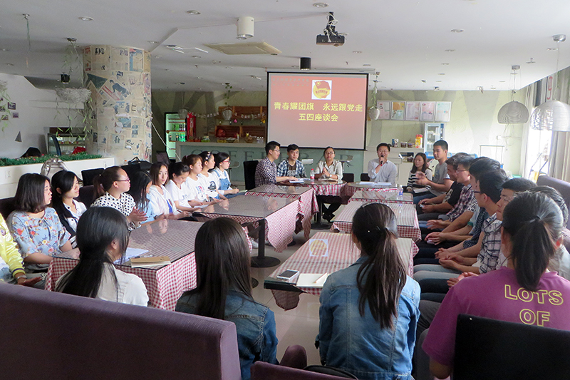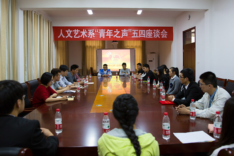 人文艺术系在系会议室召开的“五四”青年座谈会,以“倾听青年之声”为主题,以“反映青年呼声,回应青年诉求,维护青年权益,服务青年成长”为宗旨,分“重温团史”、“谏言献策”、“自由交流”、“高举团旗跟党走”四个环节进行。院团委老师带领大家“重温团史”,讲述了五四青年节的由来以及五四运动的重要意义和深远影响;分团委老师则组织大家学习团员的权利和义务,希望青年代表发挥主人翁意识,广泛征求意见或建议,为系分团委工作的开展积极“谏言献策”;“自由交流”环节中,青年代表们围绕课堂文明、宿舍管理、后勤服务、专业教学、志愿服务、社团建设等方面提出了意见和建议,反馈了一系列的问题,与在场的老师进行了互动;“高举团旗跟党走”环节中,系部党总支副书记对青年代表们就从激发积极进取的心态、生涯规划、健心强体等方面对青年学生提出希望和要求。