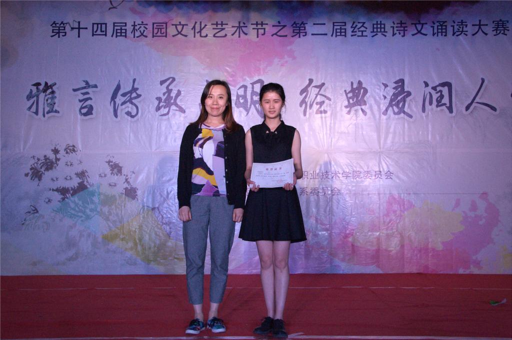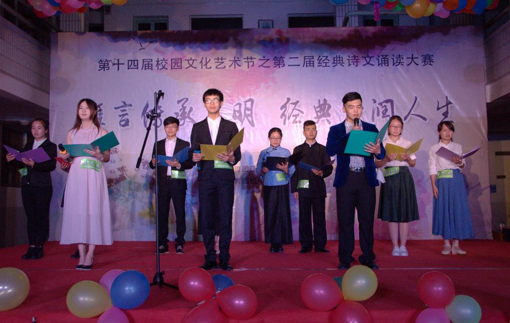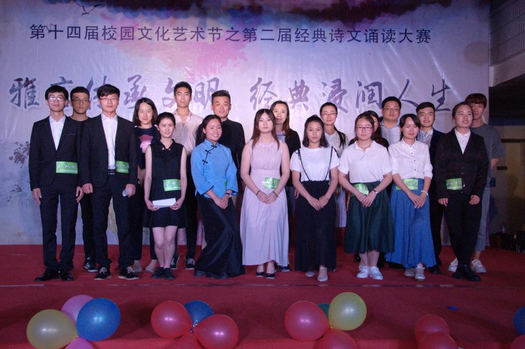 为弘扬中华民族优秀的传统文化,5月25日晚,由学院团委主办,机电工程系分团委承办的第十四届校园文化艺术节之“雅言传承文明经典浸润人生”第二届经典诗文诵读大赛在理科楼拉开大幕。