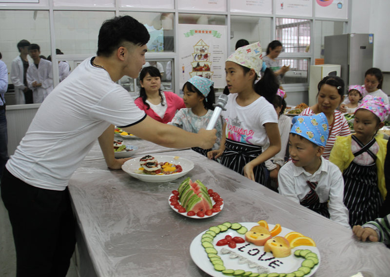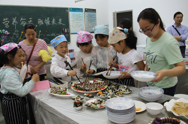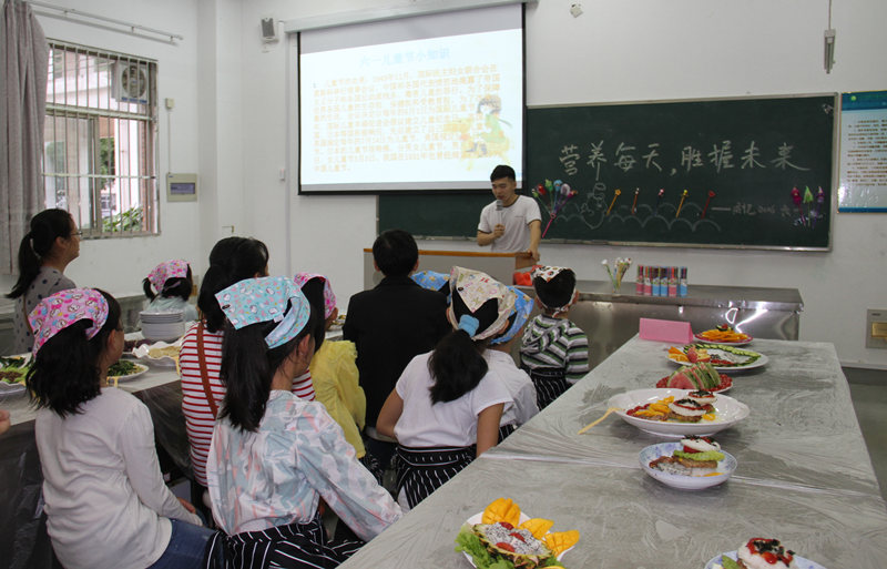 亲子课堂上,生物工程系学生图文并茂的为小朋友们讲解了《中国居民膳食宝塔》,与在场的教职员工们分享了如何搭配安全健康、营养合理的膳食。课后,营养协会为大家准备了丰富的爱心晚餐,父母与小朋友一同分享,其乐融融。