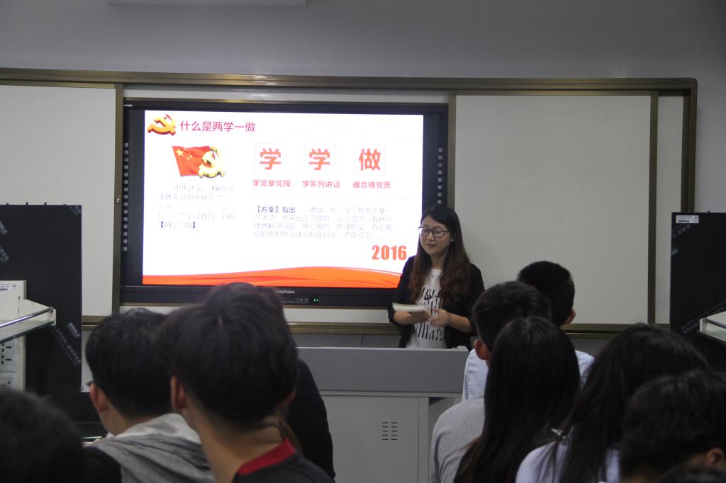 6月2日晚7点,农学园艺系学生党支部题为“学党章党规,学系列讲话,做合格党员”的“两学一做”专题党课在研发楼A208教室举行,本次党课由学生党支部书记嵇怡主讲,她从“两学一做”的背景意义、学习要求、学习内容及如何做一名合格的党员四个方面进行阐述,强调每一位同学都要从思想上重视、行动上贯彻“两学一做”学习教育的重要意义,真正通过学习,提高党性修养,做“四讲四有”的合格党员。她说学生党员包含了“党员”和“学生”两重属性,应发挥先锋模范作用,以身作则,用自己的思想言行带动同学们共同前进。