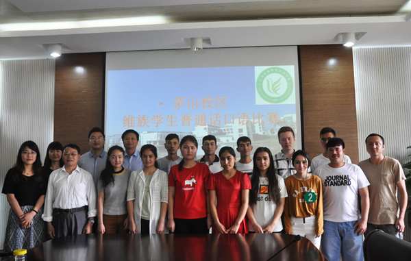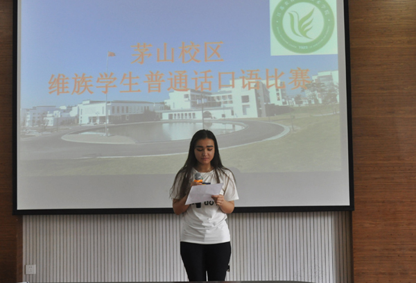 为提高维吾尔族同学普通话水平,加强维族同学和汉族同学的沟通与交流,6月16日,茅山校区举行了维吾尔族同学普通话口语水平比赛。比赛分为文章朗读、词语阅读、绕口令朗读三个环节。13名维族同学经过三轮的比拼,最终,米拉迪力.艾山同学凭着清楚流利的普通话荣获本次比赛的第一名。