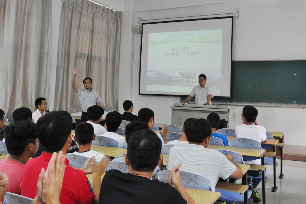 机电工程系的入学教育大会上,副书记李杨从“熟悉我们的院系”、“认识我们的老师”、“看看我们的生活”、“为你搭建的平台”和“你,必须知道的”五个部分详尽地为新生解答了入校的困惑。教师代表吴阿敏和在校生代表江敬虔分别就如何充实地度过大学三年,提出建议。系部主任刘永华则希望全体新生能够通过农林的磨炼锻造,成为具有大国工匠精神的栋梁之材。系部各教研室在会后还分别召开了新生专业教育会议。
