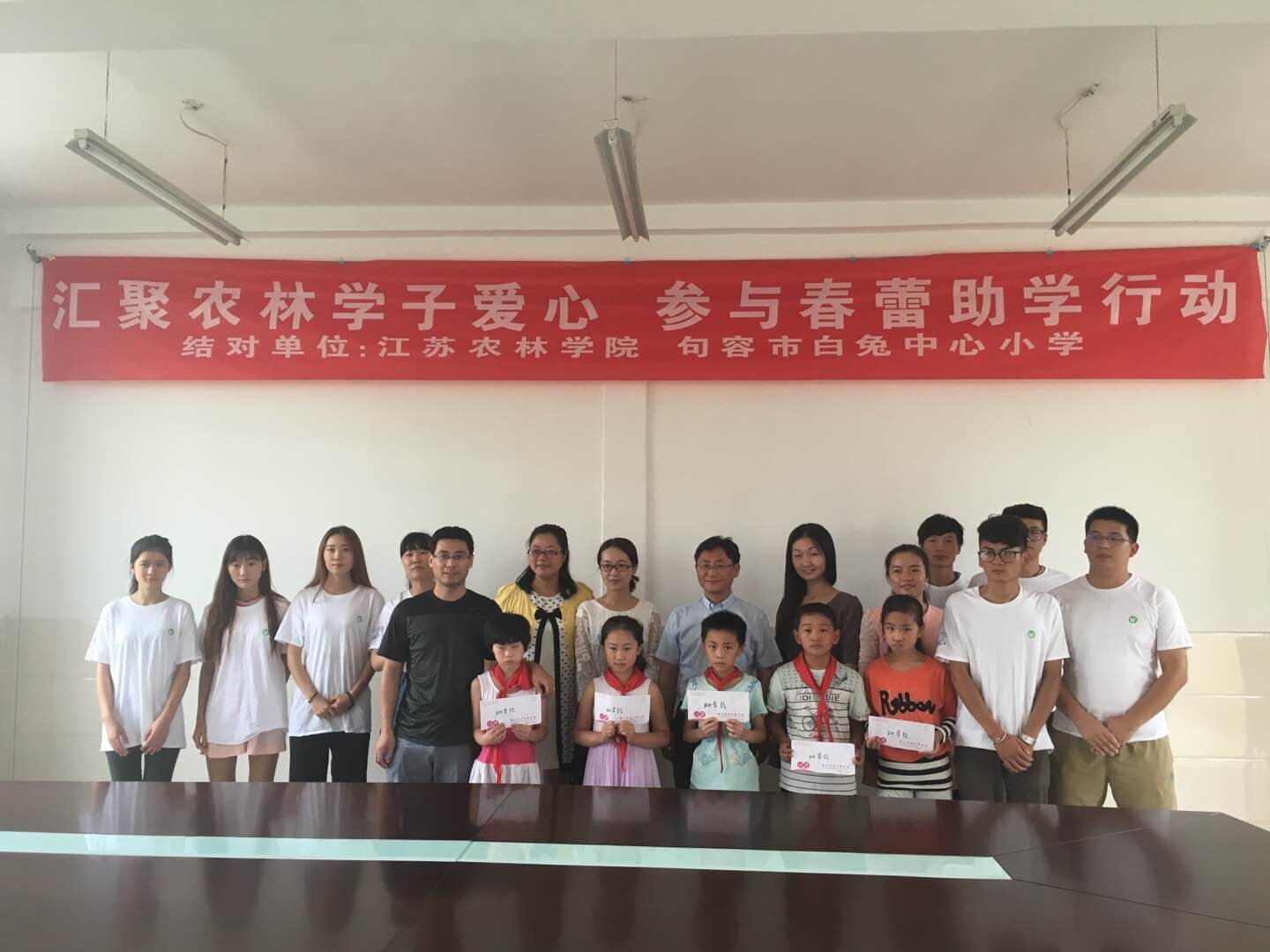 中秋前夕,永利官网团委赴结对帮扶单位句容市白兔中心小学举行了“汇聚农林学子爱心,参与春蕾助学行动”助学金发放仪式。镇江市妇联、白兔小学校领导等参加仪式。