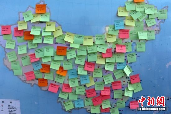活动最后,来自不同省份的学子们还把自己对祖国的祝福语贴在了“中国地图”的寄语板上,这些祝福语字里行间抒发着对祖国的热爱。