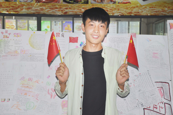 本次活动包含“国庆手抄报作品展”、“我想对祖国说的话”和“我和国旗合影”三个环节。“庆国庆”为主题手抄报的展示,不仅提高了同学们对此次活动的积极性,同时也丰富同学们对国庆的了解,手抄报作品从国防、科技、教育、文体、艺术等方面进行展示;“呢喃细雨,祖国请您听我说——迎祖国67华诞”,同学们纷纷来到横幅前挥笔写下对祖国母亲的寄语,并签下自己的名字;而“我和国旗合影”环节,大家手执小小的五星红旗,在镜头前露出灿烂的微笑,来表达对祖国的热爱,传递青春正能量。