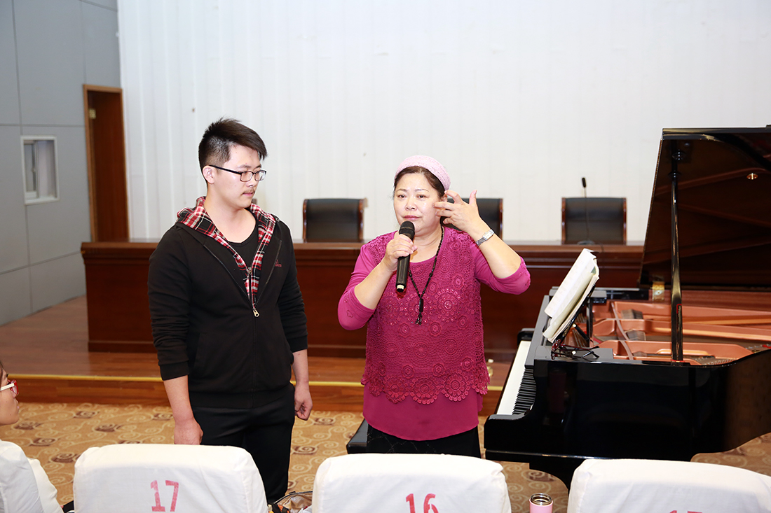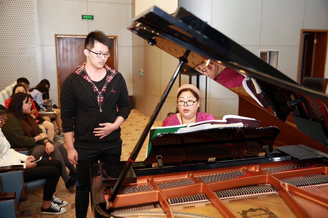 讲堂上,永利官网音乐表演班的同学们先后登台演唱,王远教授一边为他们弹琴伴奏,一边指导演唱技巧,从歌词发音到对音乐的理解,从气息发声到演唱技巧……王远教授用其深厚的专业知识和精湛的专业素养让永利官网在场师生深深折服。
