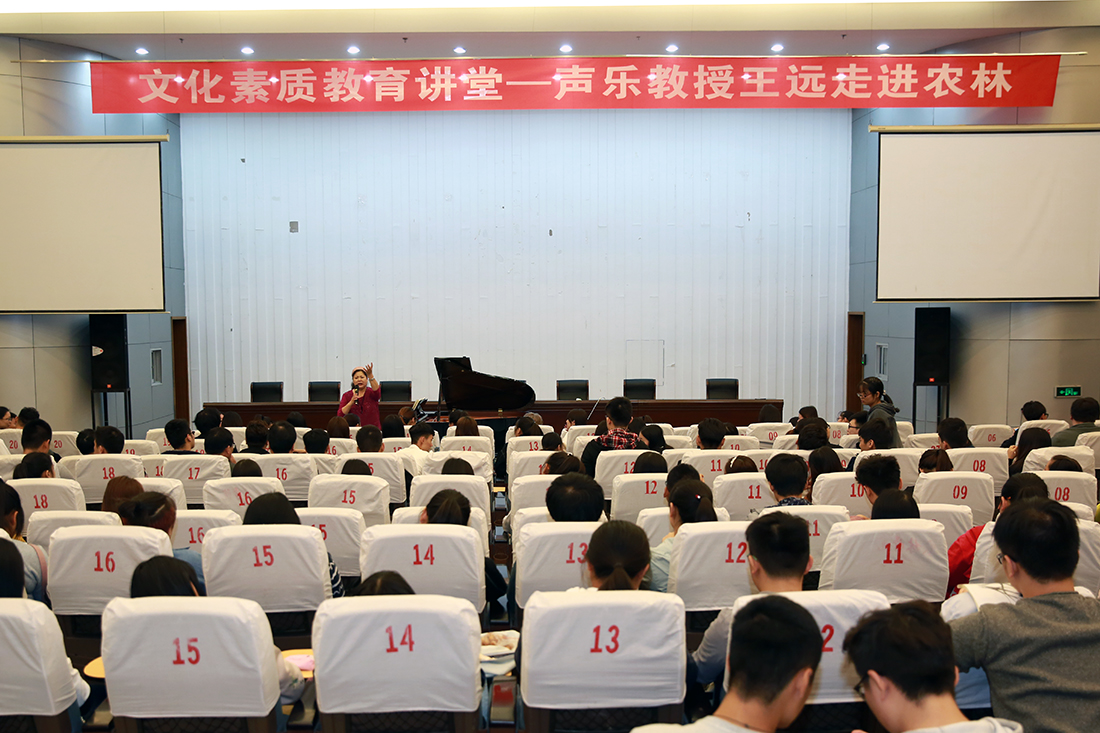 10月9日上午,由院团委和人文艺术系联合举办的“文化素质教育讲堂——声乐教授王远走进农林”在永利官网图书馆报告厅举行。