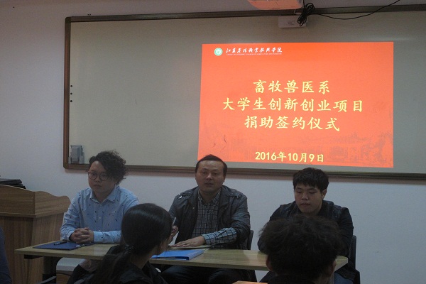 为进一步鼓励在校大学生创新创业工作,10月9日,畜牧兽医系正式成立了“小牛犊创新创业基金”。系创业校友句容诺威生物科技有限公司邱宸总经理出席成立仪式并捐助首个5000元创新创业基金。