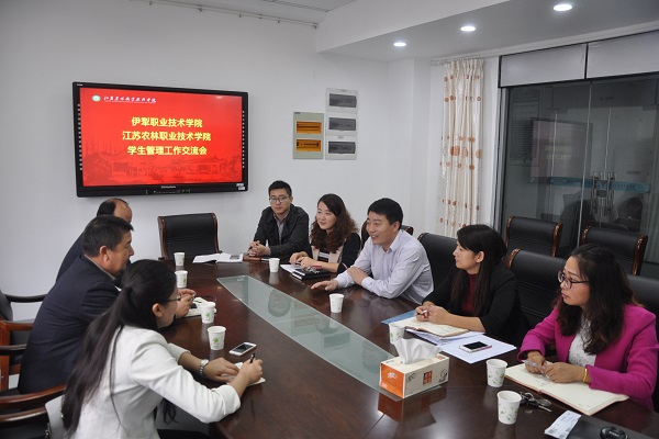 会上,颜志明主任对来访客人表示热烈的欢迎,并简要介绍了农学园艺系的基本情况,学生工作分管负责人介绍了系部学生工作的总体情况,并针对伊犁职业技术学院所关心的党建工作、大学生公寓管理体制、学生创新创业等问题做了详细讲解。居来提副主任介绍了伊犁职业技术学院农业工程系的专业设置、学生工作等。双方还就辅导员队伍的建设、学工考核的创新改革等问题交换了意见。