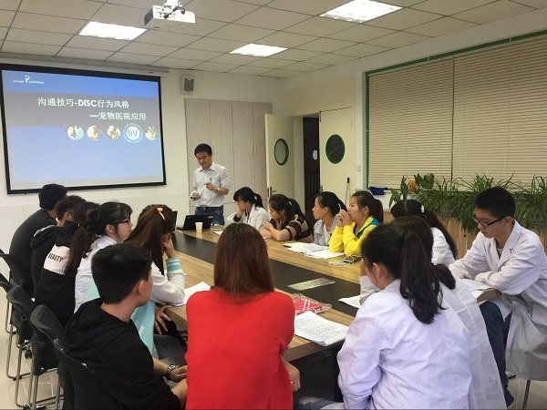 为提高畜牧兽医系“艾贝尔”学徒制班学生的创业能力,动物教学医院组织开展了宠物用品销售模拟教学,并于10月25日下午,邀请美国硕腾(上海)动物保健品有限公司销售经理康国民先生为“艾贝尔”班和爱宠社的同学们做了一场题为“沟通的技巧-DISC行为风格在宠物医院应用”的讲座。