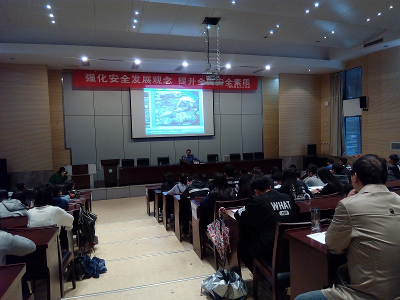 根据畜牧兽医系2016-2017学年第一学期学风建设月系列活动计划,10月26日下午,镇江市防培训中心许超教员应邀在研发楼报告厅给全系大一新生举行了一场以“强化安全发展观念,提升全民安全素质”为主题的消防安全知识讲座。许教员在讲座中主要讲解了火灾的危害、消防器材的正确使用方法及突发事故中灭火自救、防火逃生的技能等,并且围绕近几年高校宿舍火灾事故突出强调了大学生宿舍使用违章电器、火灾隐患等问题,增强了新生们的防火安全意识。