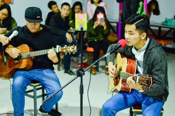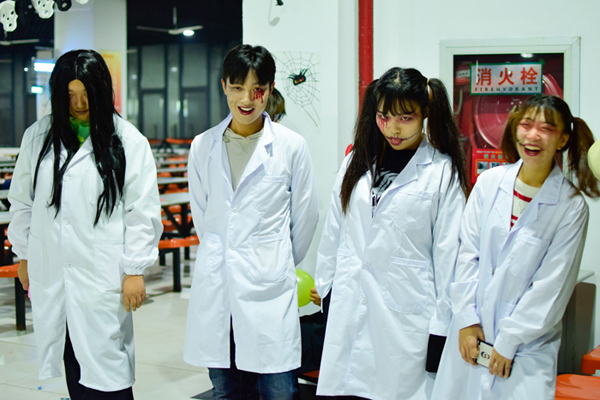 10月31日晚,由茅山校区分团委主办的以“鬼混来袭,魅影万圣”为主题的万圣节狂欢活动在校区食堂火热举行,独特的造型、令人惊悚的万圣节服装、魅惑神秘的妆容惊艳了全场。吉他社团弹唱《绅士》等精彩节目中穿插了“蒙眼头顶乒乓球”、“拍气球”、“群魔乱舞”等一系列有趣的游戏,让在场同学欢呼连连,cosplay动漫社团最后带来的奇装异服走秀更是将活动推向了高潮。