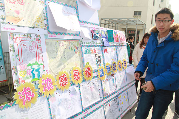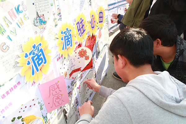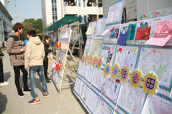 农学园艺系学生将自己对父母、朋友的感激之情表现在创意的小报和贺卡上,展出现场,投票的同学络绎不绝,过往的学生在欣赏作品的同时,也感受着这份浓浓的感恩之情。
