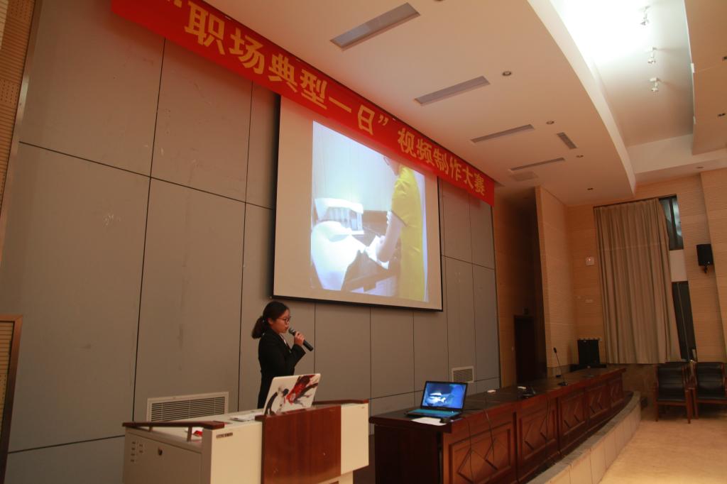 比赛过程中,12名参赛选手结合自身职场实习经历,制作了独具特色的职场一日视频,秀出了各种职业岗位特征和个人风采。评委老师对选手们的精彩表现给予了高度的赞扬和肯定,从视频制作技术、场景设计、脚本撰写等角度提出了宝贵的建议。