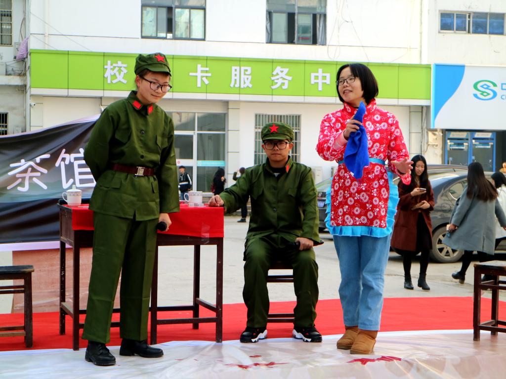本次公祭活动紧紧围绕“中华儿女当自强,国耻于心勿能忘”的主题,共设“献唱爱国歌曲”、“话剧表演”、“手写爱国祝福语”三个环节。同学们精心排练的经典红色话剧《智斗》吸引了大批围观的同学,精湛的演技赢得现场阵阵掌声。