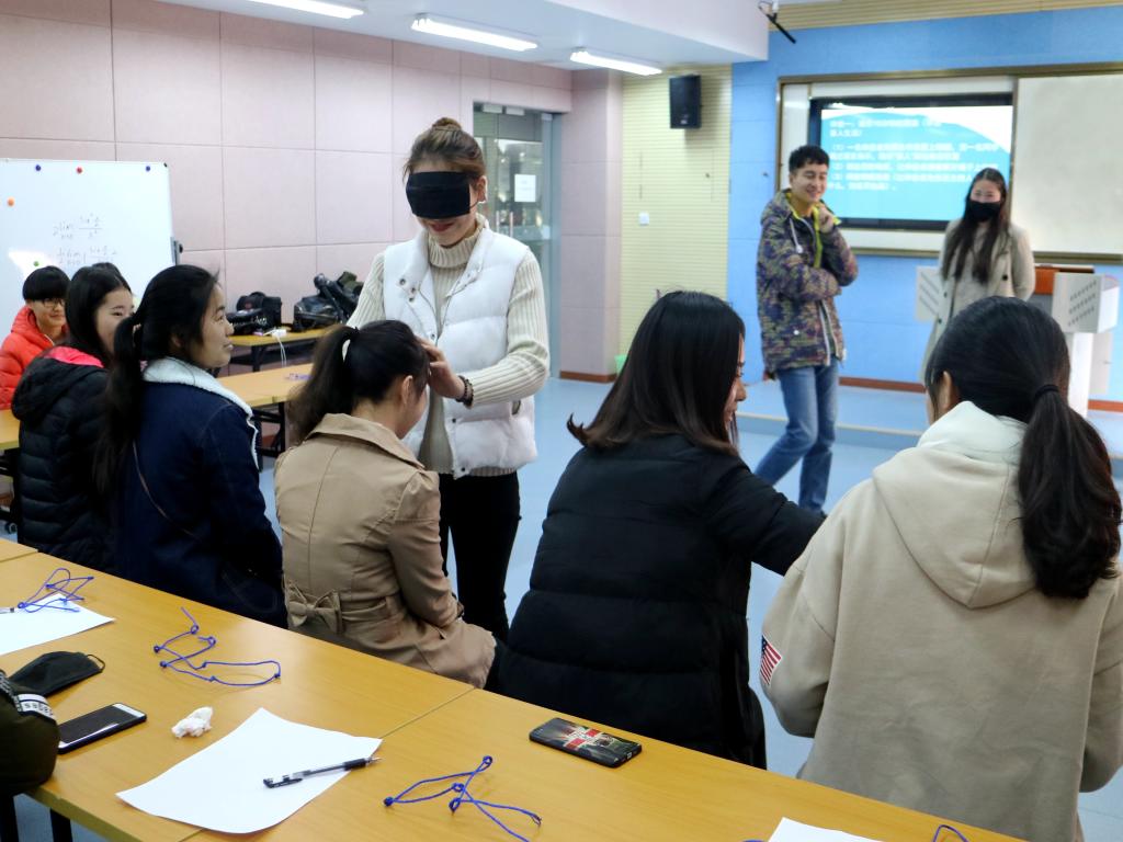 本次活动主要以游戏方式展开,通过“给你10分钟的黑暗”、“手语传递爱心”、“用心拥抱世界”等游戏环节,拉近了同学们与残疾人之间的距离。寓教于乐,令同学们在开心快乐的氛围中走进残疾人的世界,带着最真挚的情感去体验他们的生活环境。