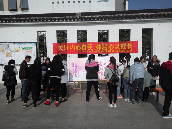 12月6日,在校区食堂门口的“关注内心自我,体验心灵成长”活动中,同学们纷纷写下对自己的鼓励和祝福,以更加积极阳光的心态面对生活。12月7日下午的心理电影沙龙中,同学们认真观看了心理电影《灵异第六感》,同时在心理访谈室姚世杰老师的解说下,了解到了更多的心理健康知识。