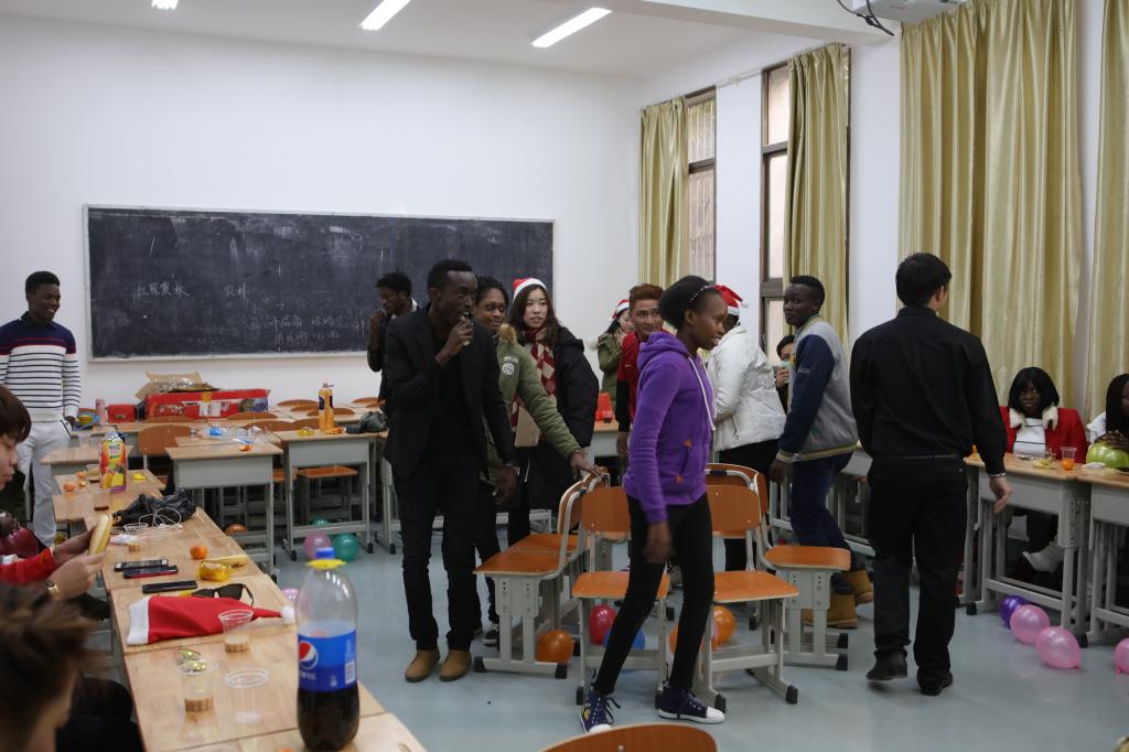 12月23日下午,国际交流合作中心在文科楼105为全院外教和留学生举办了圣诞新年联欢会。学院副院长曹仁勇、国际交流中心王瑾主任及相关同事一起和外教、留学生欢度了一个开心愉快的下午。