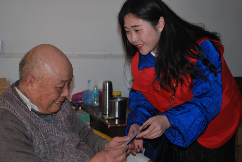 聊天、下象棋、打扑克、分发礼物、吃元宵,志愿者们用自己的爱心和耐心,让老人们感到暖心,也让老人们感受到了儿女般的亲情。志愿者们将之前活动中给老人拍的照片交给老人,满足了老人的心愿。