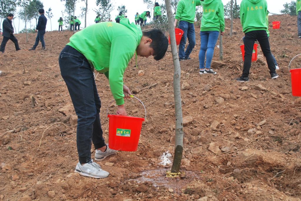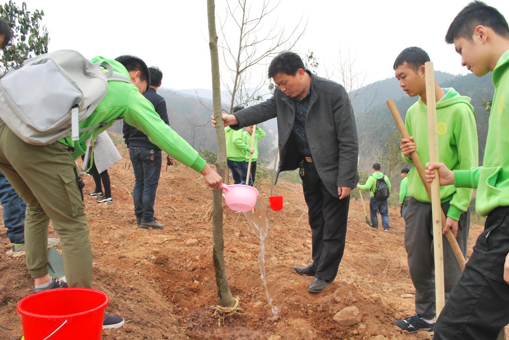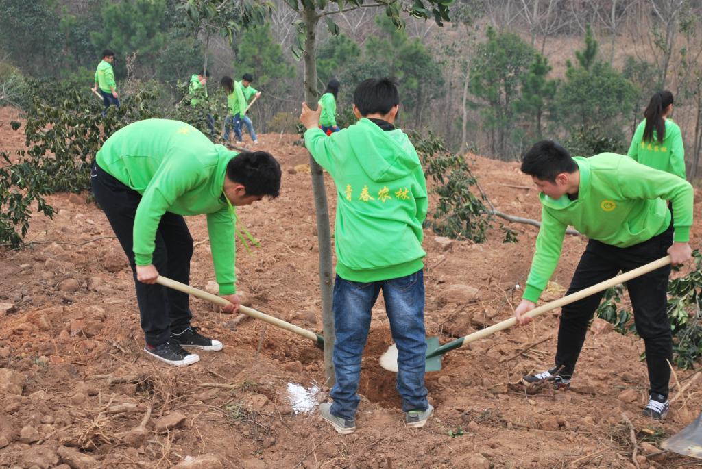 本次植树活动,学生干部们分工协作,扛苗散苗,挥锹铲土,盖土浇水,扶苗踏实……大家认真对待,干得十分卖力,他们用自己的实际行动,践行着社会主义核心价值观,实现着“让祖国变得更年‘青’”的美好愿望。