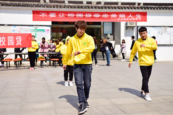 为了让更多同学意识到校园贷的危害性,树立正确的消费观,茅山校区分团委于3月15日在食堂门口开展了“拒绝校园贷”宣传活动。 活动宣传形式多样,校区街舞社的同学们通过新潮的街头快闪表演吸引同学驻足观赏,现场也拉起了“校园贷NO ZUO NO“贷”——拒绝校园贷”字样的横幅,同学们纷纷签字,以表达拒绝校园借贷的决心。活动现场还贴有关于校园贷案例的手抄报,食堂内电视屏幕上播放有关校园贷危害的视频,丰富的形式进一步加深了学生对校园贷危害性的了解。