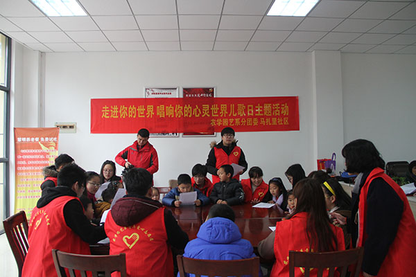 3月19日上午,农学园艺系分团委的学生志愿者与马扎里社区的留守儿童们欢聚在社区服务中心,开展了“走进你的世界,唱响你的心灵”世界儿歌日主题活动。