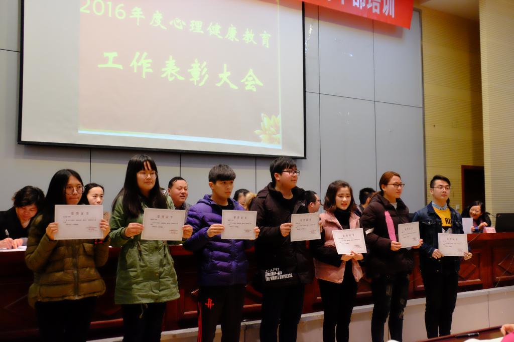 大会对永利官网在2016年度大学生心理健康教育工作中做出成绩的机电工程系等4个系部、周凌云等5位心理老师、倪玉婷等14位学生心育干部进行了表彰。并希望所有受表彰的集体和个人再接再厉害,为永利官网心理工作再创辉煌。