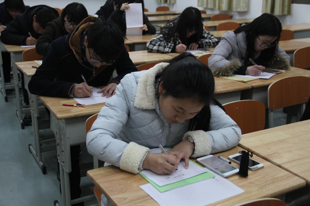 此前,3月24日在文科楼103开展的书法比赛共有19名同学参加,参赛形式灵活,内容多样,分为硬笔和毛笔两组进行。比赛现场,同学们冷静自然,挥洒自如,有娟秀工整、流水行云的硬笔楷书,有恣情挥毫、笔走龙蛇的毛笔书法;作品内容丰富,积极向上,绽放着青春的阳光美,经过27日中午同学们的投票评选,最终选出一等奖2名,二等奖4名,三等奖6名。