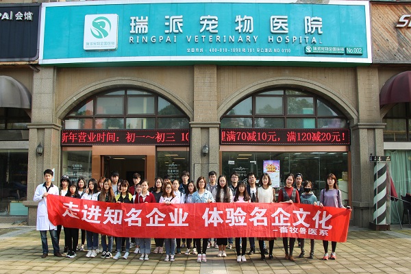 公司管理人员详细地向学生介绍了江苏瑞派东华宠物医院管理有限公司的发展历史、企业文化、组织结构。随后,在公司负责人的带领下,同学们深入公司门店进行观摩。