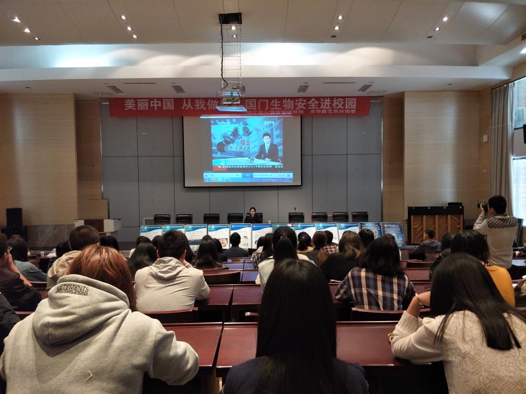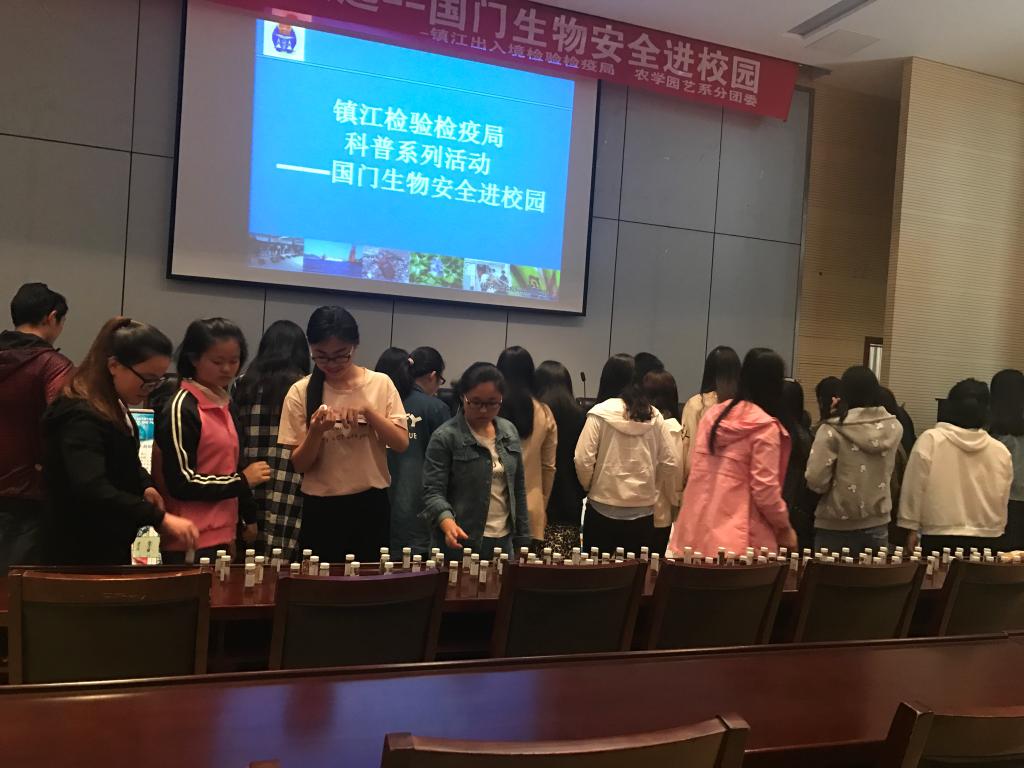 4月26日,镇江出入境检验检疫局在学院研发楼报告厅举行了“美丽中国,从我做起——国门生物安全进校园”活动,农学园艺系15级农学专业的100名学生参加了此次活动。