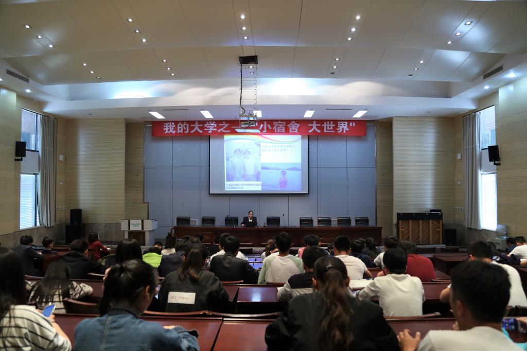 王老师分别从“当今社会人际交往的重要性”、“大学生宿舍人际交往的问题”以及“大学生如何正确处理宿舍及他人的人际关系”三个方面进行讲解。王老师幽默风趣的语言、丰富的案例以及与场下的互动将会场气氛变得轻松,场下时时爆发出阵阵笑声和掌声。
