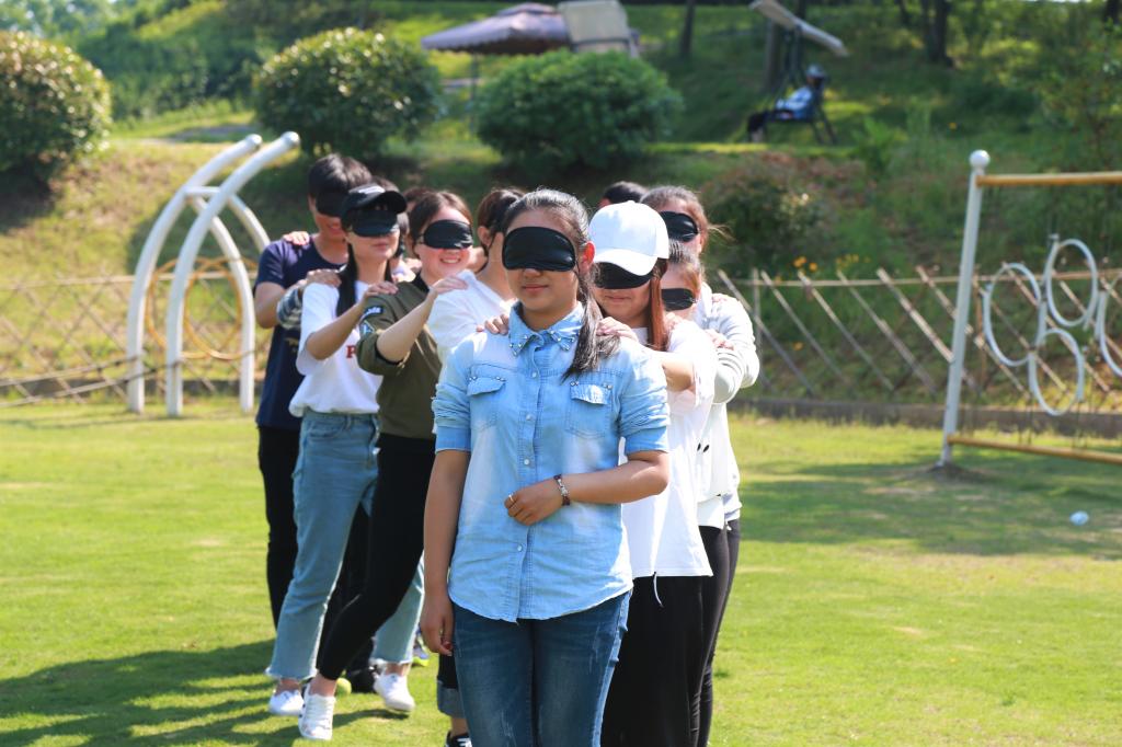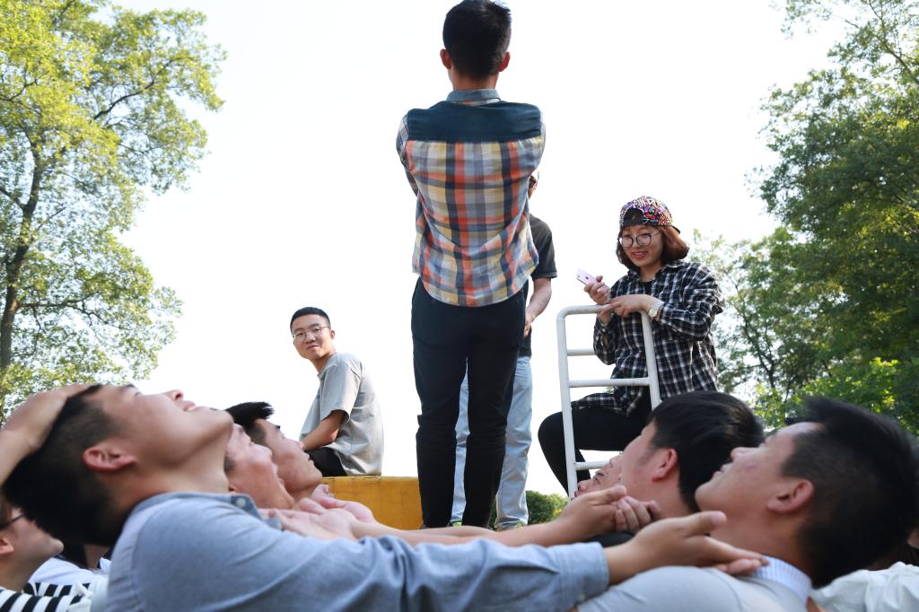 本次活动采取“理论+游戏+分享”的形式,分别进行了“围圈坐腿”、“瞎子贪吃蛇”、“信任背摔”、“坐地起身”、“耐力攀岩”等破冰、协作、竞争为主题的户外拓展活动。活动中,同学们在老师的指导下完成了一个又一个的挑战动作,在轻松欢快的氛围中很快找到了团队归属感,感受到集体的力量和凝聚力。